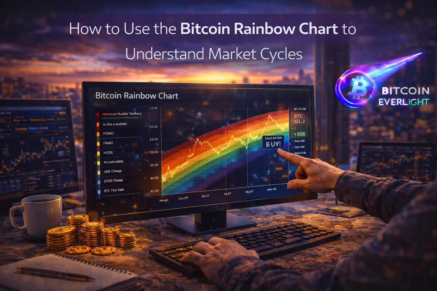 Learn how to use the Bitcoin Rainbow Chart to understand long-term valuation bands, market psychology, and how Bitcoin cycles move between extreme fear and bubble territory.