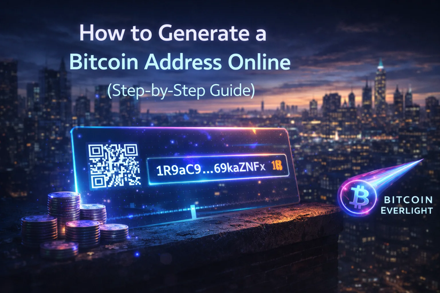 A simple step-by-step guide showing how to generate a Bitcoin address online using a browser-based tool, helping you understand how Bitcoin addresses and private keys work.